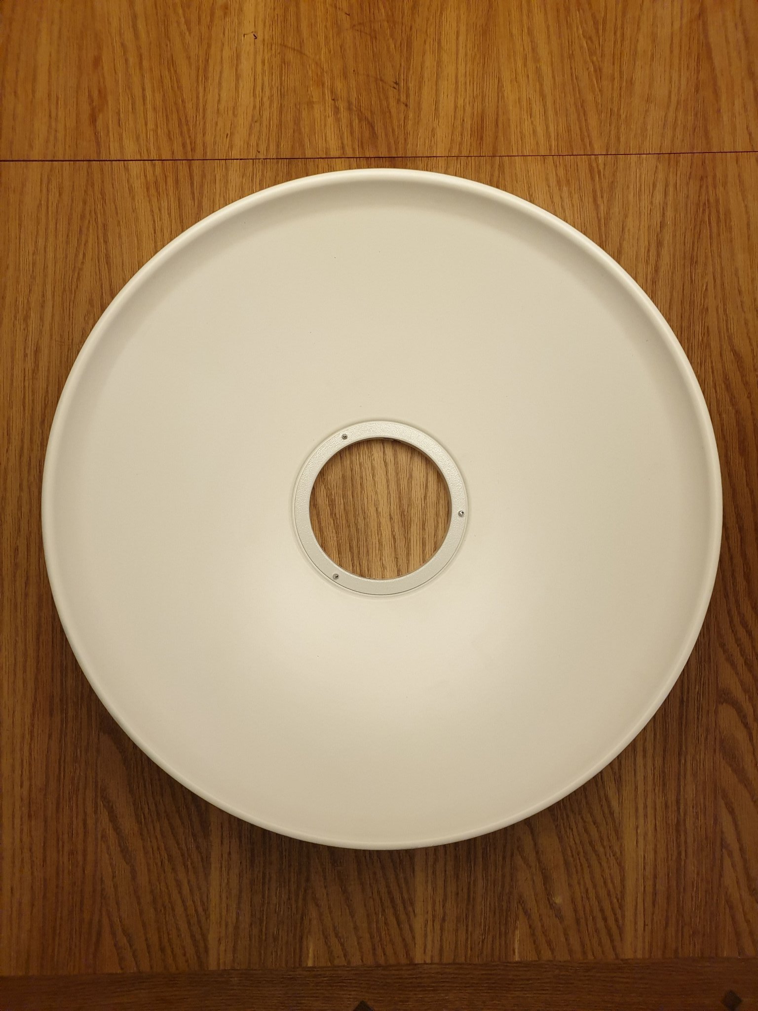 Reflector beauty dish con cara interior blanca ligeramente menos contrastada que el de interior plateado.