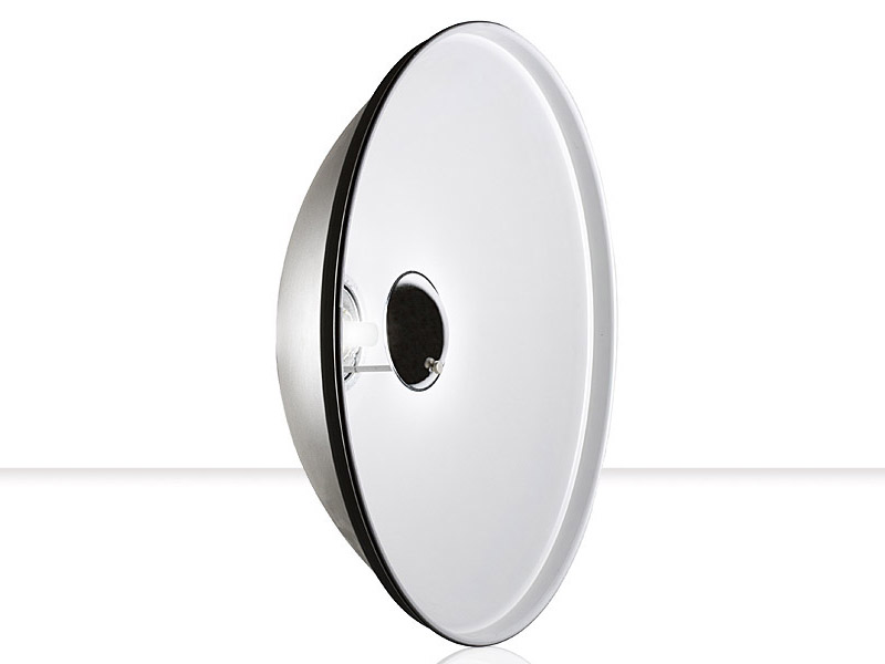 Esta beauty dish com 44cm de diâmetro proporciona um aluz suave e difusa, muito semelhante à luz do sol.